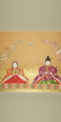 雅楽に使われる楽器に桜や楓を吹き寄せ模様に配置しました。