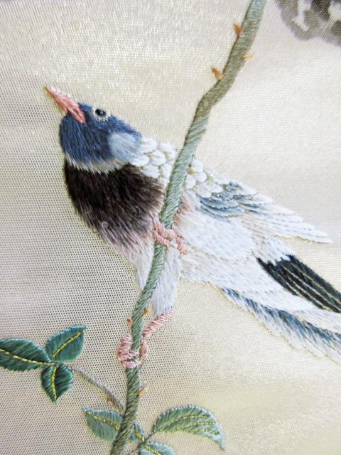 江戸時代の人気の構図「薔薇小禽図」を西陣の引き箔帯地に表現しました。